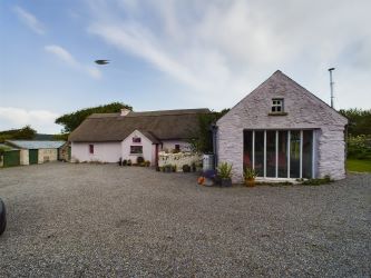 This is an idyllic coastal property, 300m from Kilmurren Cove set on 1.7 acres and comprising a beautiful 2 bedroom detached thatch cottage, detached garden building, workshop and outbuildings. Lovingly and thoroughly renovated over a 6 year period by the current owners, the cottage retains all of its original charm; stone walls, thatch roof, large bogoak beam mantle, while meticulously upgraded for modern comfort. The cottage has been fully rewired, a new pellet stove underfloor zoned heating system added, new teak double glazed windows and all floors are engineered solid timber, floors and ceilings are insulated and the attic room has been reinforced with an RSJ beam. Internally, the kitchen has bespoke solid wood fitted units with a Silestone quartz composite worktop and splashbacks and new appliances and has a cosy insert wood burner stove. Adjacent to the cottage is a renovated and reslated garden building, with plenty of scope for an additional office or store. The site area extends to a substantial 1.7 acres with sea views from the Western boundary and contain a 170 sq.ft steel framed workshop, fruit orchard, established vegetable gardens and 40 ft polytunnel, walled in BBQs area and orchard. This is a superb coastal location on the spectacular Copper Coast drive, 5 minutes` walk from Kilmurren beach, a beautiful sandy cove nestled between two cliffs. This is an accessible location, location 20 minutes` drive from Tramore town 15 minutes` drive from the Waterford Greenway, 30 mins from the City and midway between Wateford and Dungarvan.